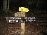 ここにある標柱には駐車場のあった歌ヶ浜まで1.8キロ、千手ヶ浜まで10.8キロと書かれている。この木の標柱は約500mおきに設置されているようである。中禅寺湖に突き出た八丁出島の付け根を過ぎると、砂浜沿いの道に出るため、砂浜に出て歩く。そして森の中の道に戻るとすぐに阿世潟に出る。林の中の遊歩道それた砂浜に出る。
